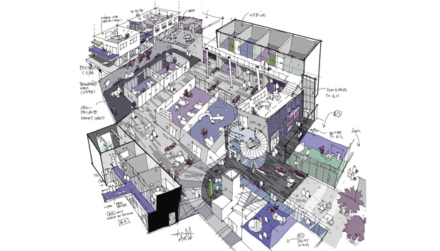 萬谷建筑設計團隊提倡的【都市客廳】是把策劃運營上的變化,變現在建筑設計室內公共空間設計上,直接反應打造出激動人心的建筑外觀,從而進一步提高運營效果的設計手法。